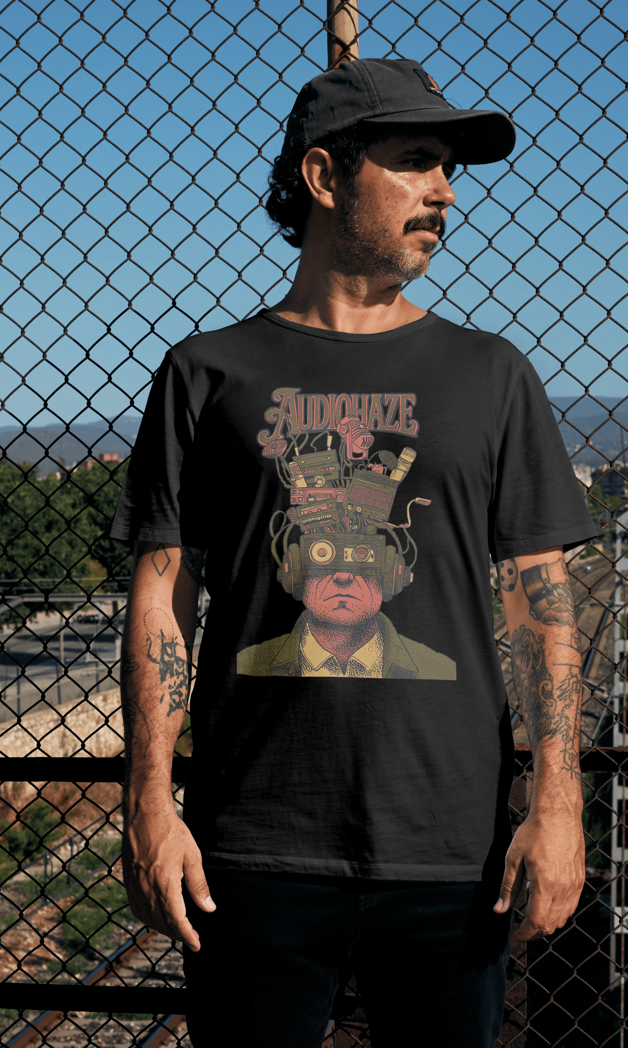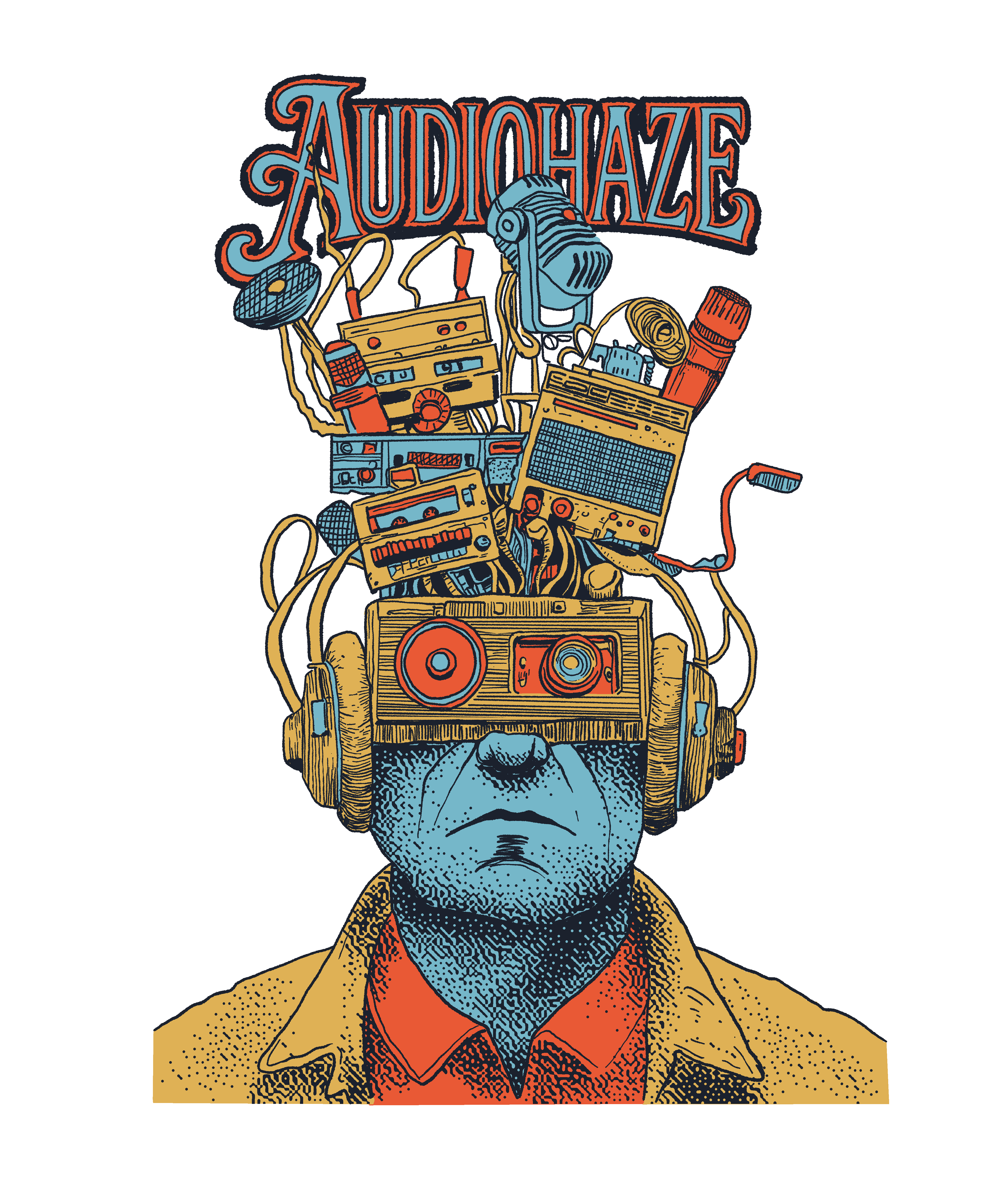 Merchandise design created for AudioHaze, a music and audio culture brand built around creative experimentation and gear exploration. The goal was to develop artwork that felt playful, surreal, and instantly recognizable within the world of music production.